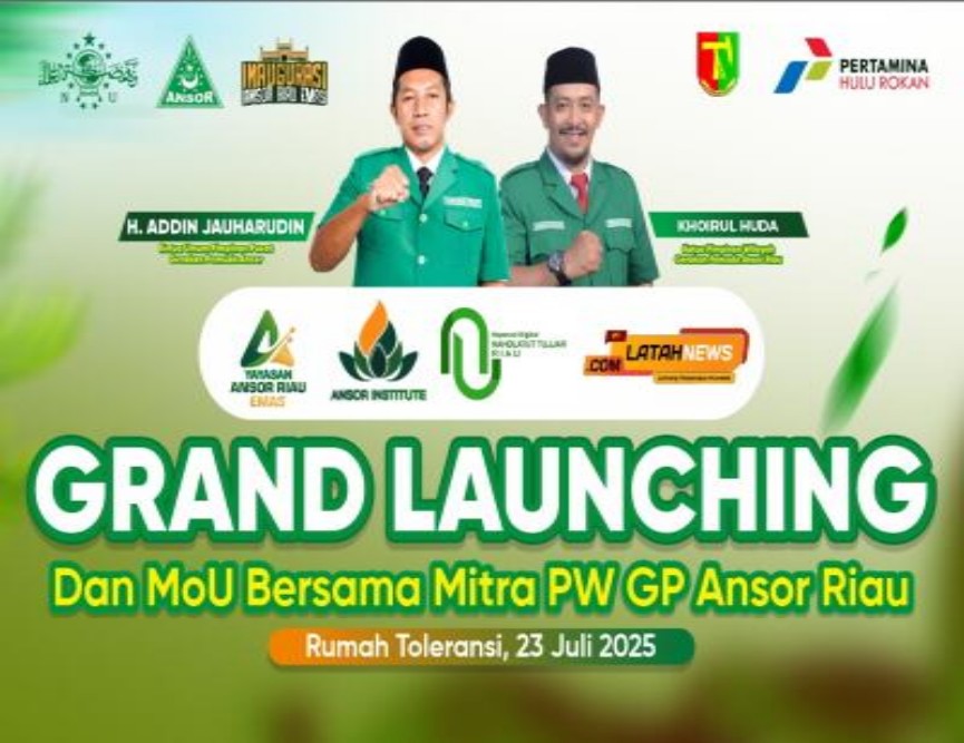 Pekanbaru, LATAHNEWS.COM – Pimpinan Wilayah Gerakan Pemuda Ansor Riau gelar Grand Launching dan MoU bersama Mitra PW GP Ansor Riau di Rumah Toleransi, pada Rabu (23/07/25).