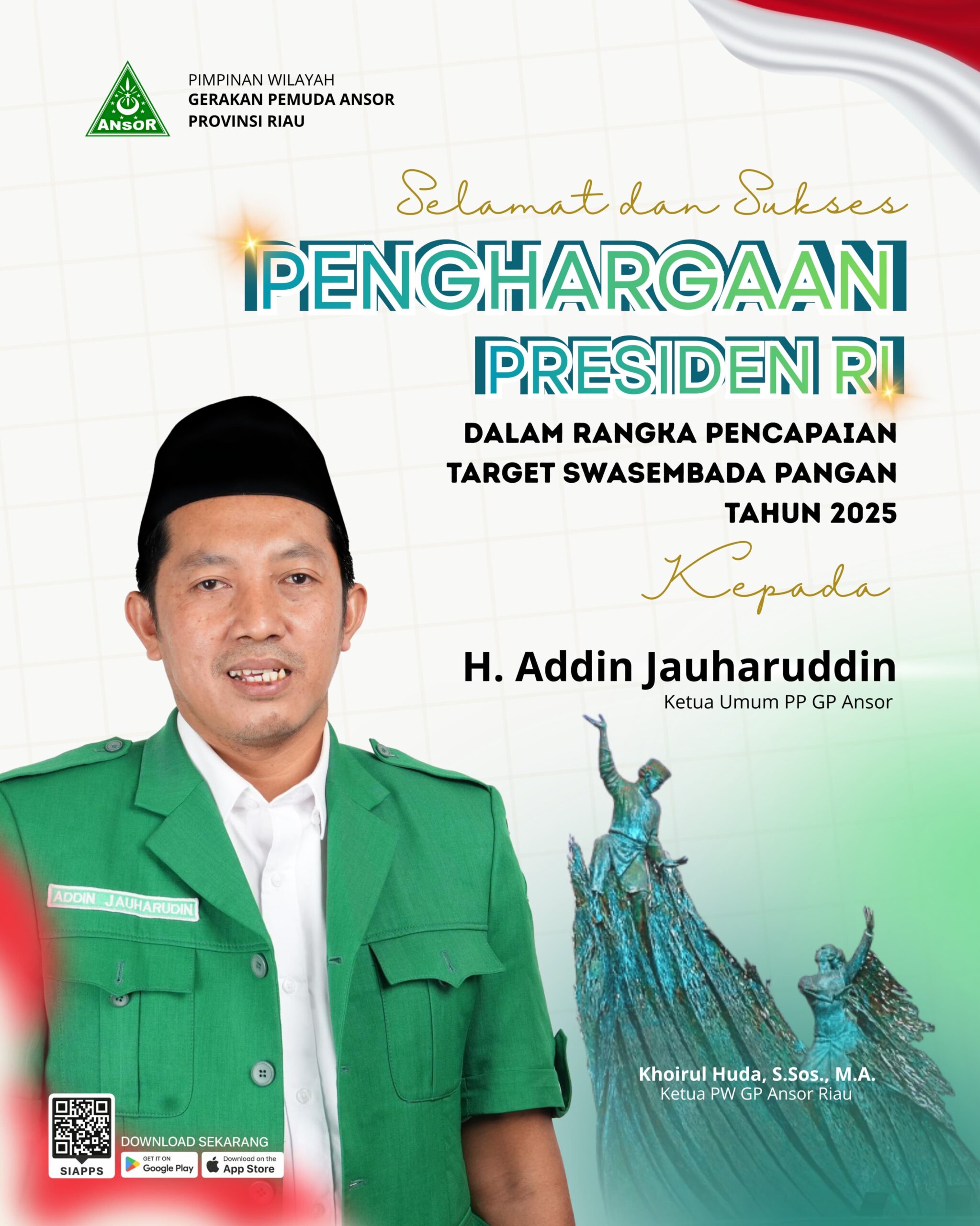 • Raih Penghargaan Presiden, PW GP Ansor Riau Apresiasi Ketua Umum PP GP Ansor H. Addin Jauharuddin